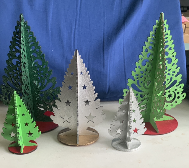 Laser cut Christmas trees in 3 sizes large, medium, small.